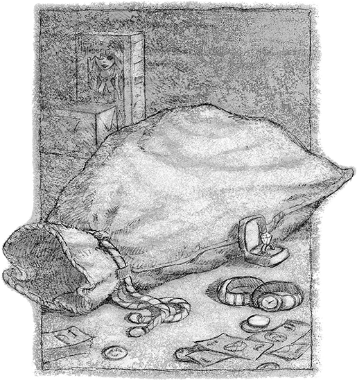 Он сделал глубокий вдох. Затем поднял мешок и поразился, насколько тот оказался легким – Джесс спокойно мог держать его на вытянутой руке. Размером мешок был с большой мусорный пакет, какими пользуются в саду. Джесс стряхнул с мешка снег и отнес его вместе с куклой на кухню, прикрыв за собой дверь спальни, чтобы не напустить в дом холода.