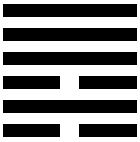 Напряженность располагается над Опасностью – твердая вера попадает в западню, эта ситуация очень опасна. Только соблюдая осторожность и осмотрительность, придерживаясь принципа срединности и неотклоняемости, можно справиться с Опасностью. А если полагаться на свою силу и продвигаться вперед, то поражение неизбежно. Поэтому и говорится, что осторожность и сбалансированность ведут к счастью, а желание дойти до конца принесет несчастье. Ценность – во встрече с великим человеком, нет Ценности в пересечении большого потока. В такой ситуации следует искать справедливого и сильного человека, чтобы он помог. Но не нельзя предпринимать рискованные действия, используя собственную силу.