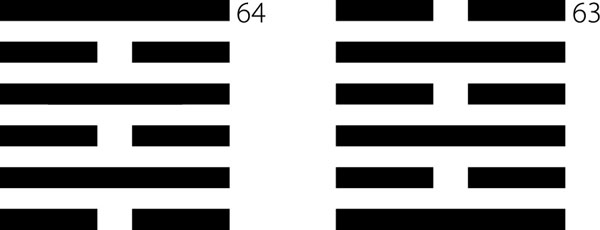 Вэнь-ван описал перемены, происшедшие с тех далеких времен, тем же простым языком, который соответствовал его времени. Беспорядок и смуту связал он с несоответствием внутреннего и внешнего, личности и мира; смещение земной оси выразилось в изменении расположения знаков по сторонам света. Каждому из 8 знаков внутреннего состояния поставил он в соответствие 8 знаков внешнего отклика. Таким образом, получился сложный знак, состоящий из 6 уровней, узор, описывающий особенности проживания человеком временной волны. Всего 64 узора обстоятельств, образцов, каждый из которых подразумевает действие или бездействие, уместность движения в определенном направлении или принесение в жертву чего-то во имя обретения желаемого, указывает на опасности и препятствия, на время для доверия и радости, для верности и стойкости.