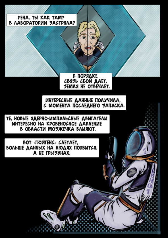 – Сколько там, пару минут сейчас задержка связи? – уточнил Джованни. – Какой же всё-таки стыд! Сто десять лет в космосе, а «опорожняться» приходится под себя в тряпки, пока не дадут разрешения на открытие внутренних отделений.