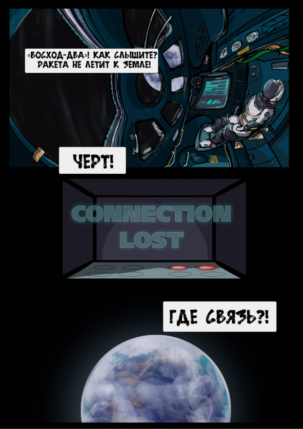 – «Восход-один»! Как слышно? Думаю, вы успеете ещё получить наше сообщение и отправить нам корректировки! Навигация даёт сбой! Гад, сильные электромагнитные помехи и чёрт знает что ещё. Мы пробуем изменить курс и выйти на орбиту Фебы. Задержка… Чёрт… Шесть часов, может, семь… – под звуки сигнального оповещения пункт управления полётов «Восход-один» получил последнее сообщение полковника ВКС России Олега Анатольевича Рагинина с борта пилотируемого межпланетного корабля «Гюйгенс-один».