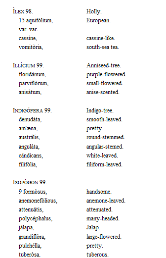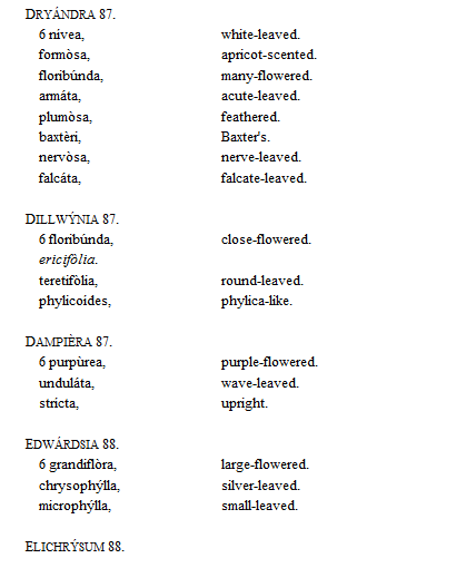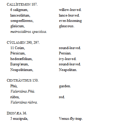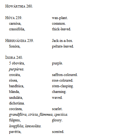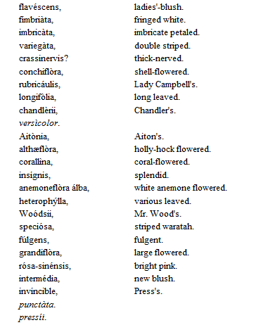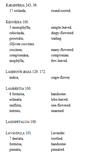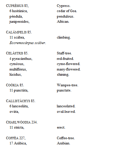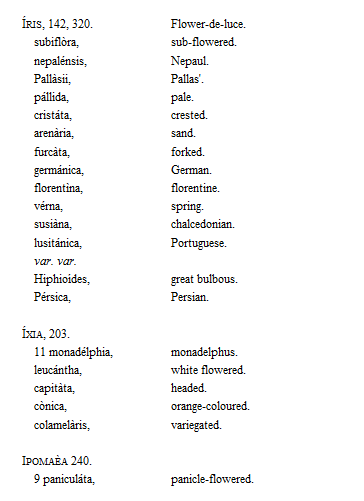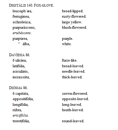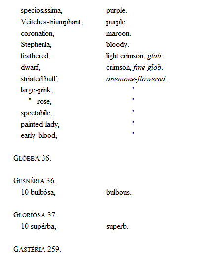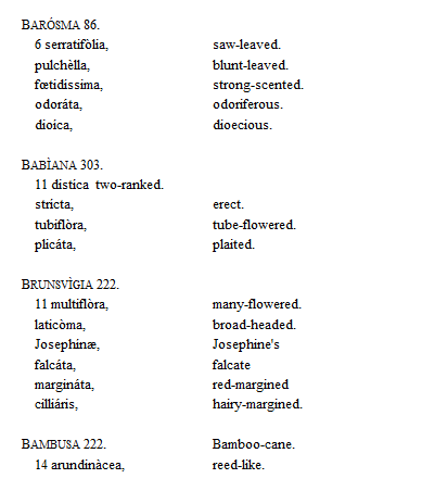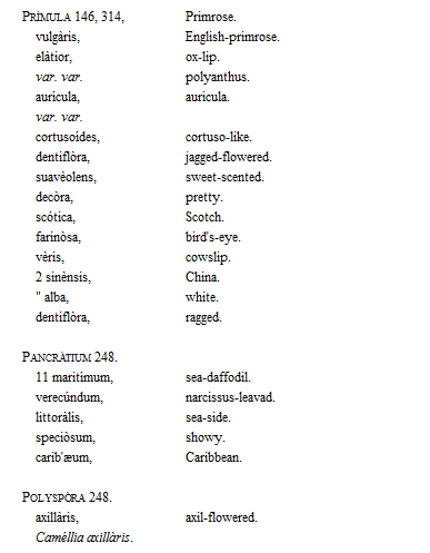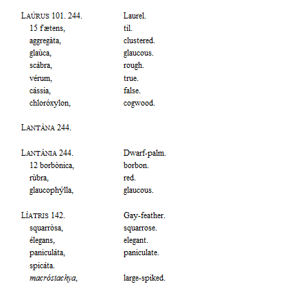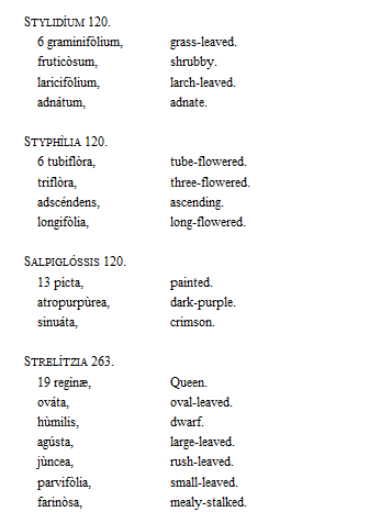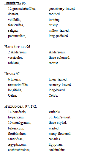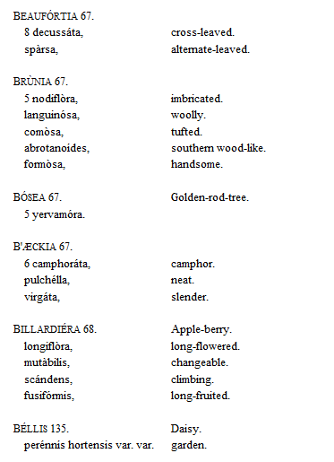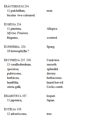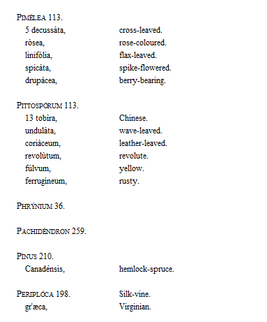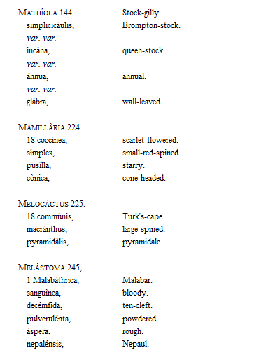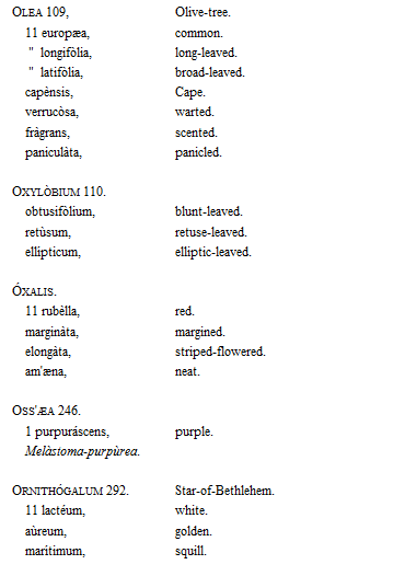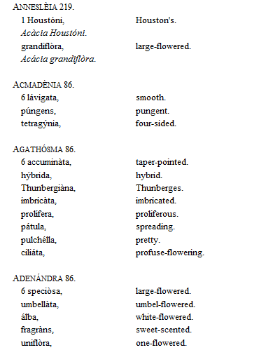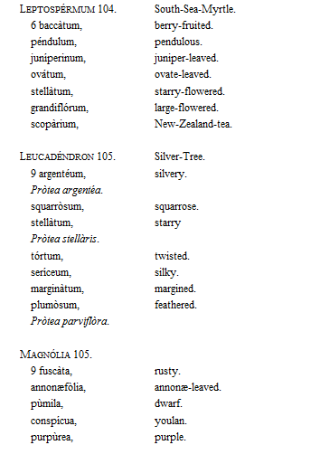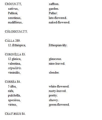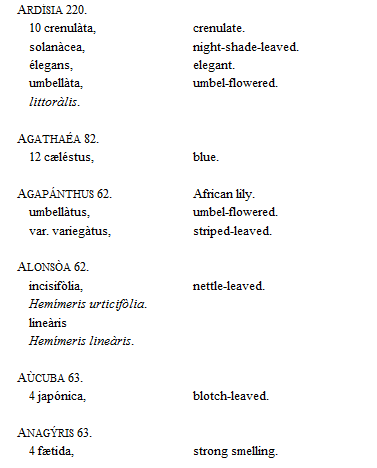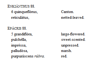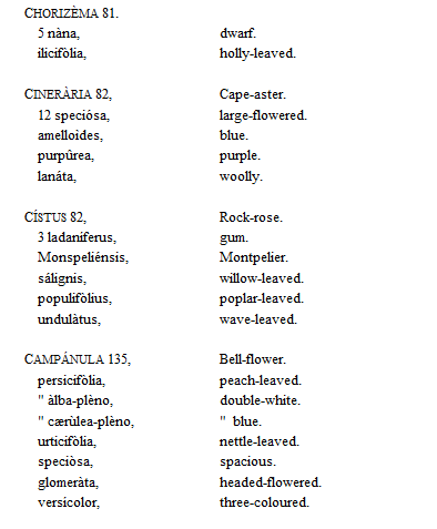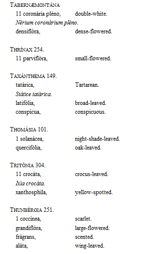 The figures attached to the first species of each Genus refer to the Table of Soils, where the compost is in parts; and where any figures occur in the same Genus, the species following are of the same nature.