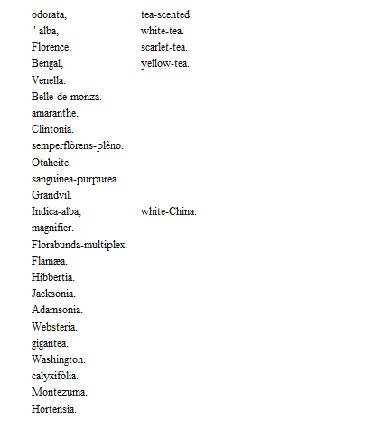 Of Fences.– Where domestic buildings do not serve as a boundary, either paling or hedge-fence has to be resorted to: we would prefer the former on the north or north-west side, which is of great advantage as a screen from cutting winds. For hedge-fences and their kinds, see page 210. The exotic observed there is Thùja orientàlis, Chinese Arbor-vitæ. The internal fences for shade or shelter to particular compartments, or to afford a diversity of aspect, may be made of Sweetbriar, hardy China roses, Pyrus, red and white, with a few others of a similar nature, all of which must be attended to, to have them in neat order.
