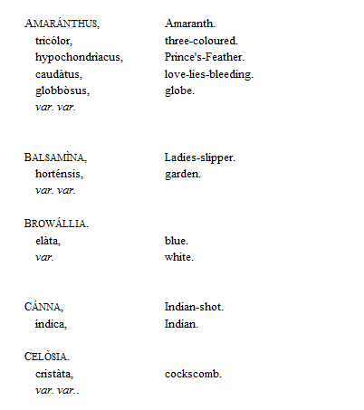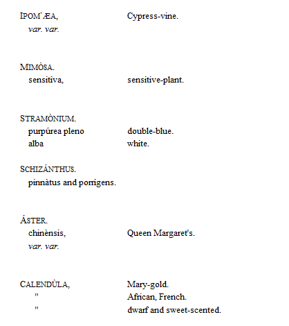 LIST OF ANNUALS THAT MAY BE SOWN ON A HOT-BED