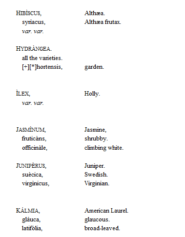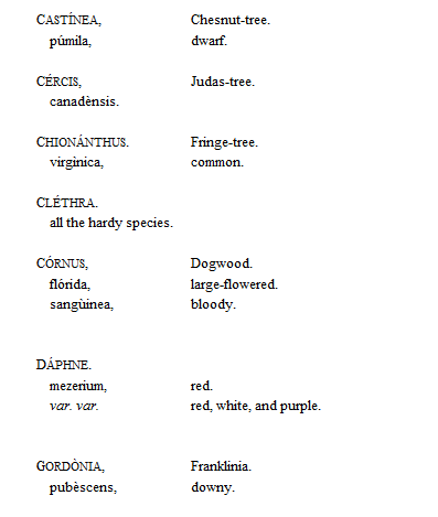 Those marked thus [*], require protection in winter, and those marked thus [+], shade in summer.