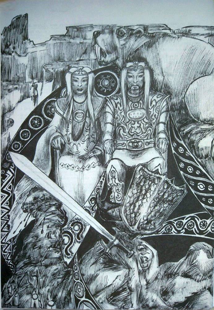 Земля разошлась, и Жельаяк вынес всадника в долину. Прямо перед Тамузом воины Толеу под белым стягом с расшитым золотом знаком солнца рубились с конниками пери. Тамуз поднял меч Алдаспан, и лошадь, не дожидаясь тычков, вся в нетерпении предстоящего боя рванула в самую гущу пери.