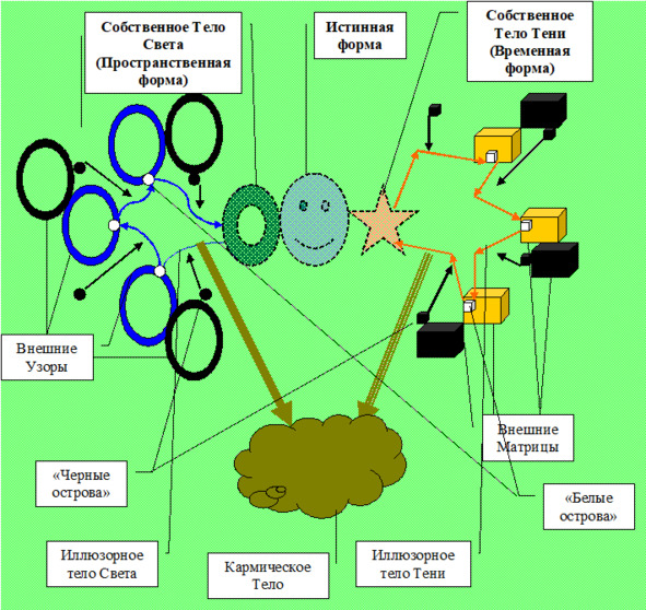 А секрет прост – мне было НЕКУДА торопиться. Не было «точки в будущем», которая могла бы меня притянуть, заставить «вытянуться» и стать «тоньше». Поэтому пространственное тело приняло форму, максимально близкую к истинной форме, и весь мир, все заполняющие его Узоры стали понятными и управляемыми. Просто я «стал» шире их – так, что действительно смог соприкоснуться с Вечностью, а не с её «временной» формой, которая доступна нам в мире иллюзий.