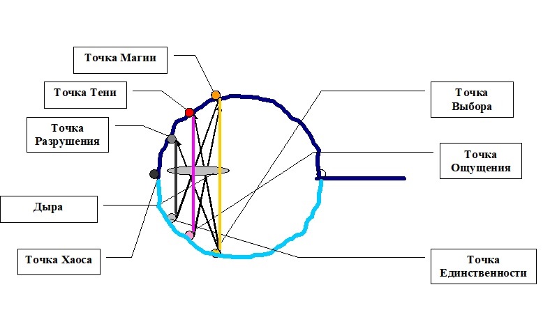 В данном случае я действовал из точки Целостности, вибрации которой отличны от точки Волшебства, поэтому мне и удалось пересечь «дыру» и изменить Узор нужным образом – проявить Силу Волшебства. С подобным сталкивались многие – когда мы полностью соединяемся с каким-то сценарием, становимся с ним единым целым, то можем добиться почти всего – Сила Волшебства в данном случае действует в полной мере, потому что вибрации точки Целостности отличаются от вибраций «дыры», отделяющей точку Творения от точки Волшебства – это и позволяет нам дотянуться до последней точки и изменить мир Волшебным образом.