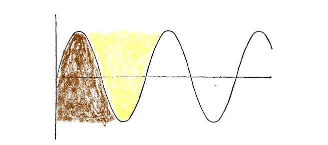Нижний правый сектор соткан из барионной материи, образующей все видимые и ощущаемые объекты нашего мира. То есть все объекты, которые мы считаем материальными в привычном смысле этого слова. Он же является «областью Матриц» или проекцией нашей точки Действия на внешний мир. Понятно, что между этими секторами есть связь, которую мы уже подробно рассматривали – именно «пустотные образы» являются причиной существования «материальных форм», вернее, они представляют собой единое целое. В прошлой рассылке мы говорили, что наше существование в Пространстве определяется амплитудой, частой и гармонией горизонтальных вибраций, равно как и наше существование во Времени определяется амплитудой, частотой и гармонией вертикальных вибраций. Но любая вибрация является синусоидой, которая в упрощенной форме выглядит так:
