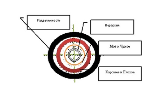Начнем с кольца Иерархии. В предыдущей книге и во многих других мы говорили, что Иерархия возникает тогда, когда появляются отношения «Выше» и «Ниже». Это так, но в основе Иерархии лежат отношения Равенства. Казалось бы парадокс – если все равны, Иерархия должна исчезнуть. Дело в том, что человеческое «равенство» относительно – мы не стремимся стать «равными» всем людям, а лишь тем, кто находиться с нами на определенной ступени Иерархии. Конечно, многим хочется представлять себя высшими – поэтому им нравится критиковать власти, наблюдать за «посадками олигархов» и так далее. Но внутри они чувствуют, что это «не всерьез» – на самом деле они могут чувствовать себя «равными» определенной группе людей. Тем, кто живет в похожих квартирах, ездит на похожих машинах (или на метро) имеет примерно столько же денег и мыслит похожим образом. Основания для отношений «равенства» могут меняться – например, для нас главное в том, что «мыслим похожим образом» – или мыслим в одну сторону. Но в других ситуациях могут быть использованы и другие основания – если я построил хороший дом и мой сосед построил тоже хороший дом, мы чувствуем принадлежность к одной группе – то есть между нами возникают отношения «равенства». Они возникают и в том, случае, когда мы живем почти в одиночестве – все равно сравниваем себя с людьми, которых мы увидели, с героями книг, фильмов и так далее. Понятно, что и на одном уровне происходит какая-то борьба – многие стремятся хоть на время стать «выше» своего приятеля. Но это тихая борьба – воевать всерьез нам мешает страх быть изгнанным из Иерархии. И у этого Страха есть своя основа.