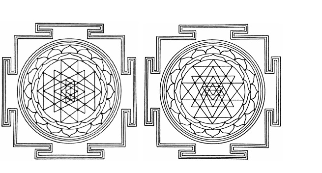 Как мы видим и эти возможности довольно велики. Но их полное обретение не ограничивается описанным – на самом деле возможности здесь намного шире. Освобождаясь от Иерархии, мы попадаем в реальный мир – в основание больших треугольников Шри-Янтры. Поскольку Шри-Янтра может быть в двух положениях, вершины этих треугольников попадают в Вечность, в Бесконечность, в Порядок или в Хаос.