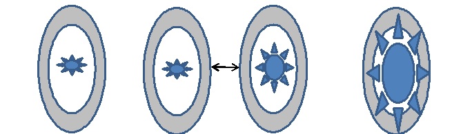 Так происходит и во всех остальных случаях. Несовершенный Узор – незавершенное или незаконченное действие образует неустойчивую «оболочку прошлого». В центре которой возникает «семя будущего», необходимое для стабилизации этой оболочки. При движении волны Времени некоторые «семена» прорастают и становятся настоящим. Но здесь возможны два варианта – в первом случае «семя» растет внутри оболочки, не прикасаясь к ней. Как когда мы возвращаемся домой, чтобы проверить – выключен ли утюг. Рост «семени» приводит к уменьшению напряженности и к стабилизации «оболочки прошлого» – на какой-то период времени мы перестаем её замечать. Но сама «несовершенная оболочка» сохраняется и вновь воплощается в Настоящее – мы опять «забываем» – выключили ли мы утюг. И нам вновь приходится возвращаться. Так и образуются устойчивые бессмысленные ритуалы, заполняющие большую часть нашей жизни.