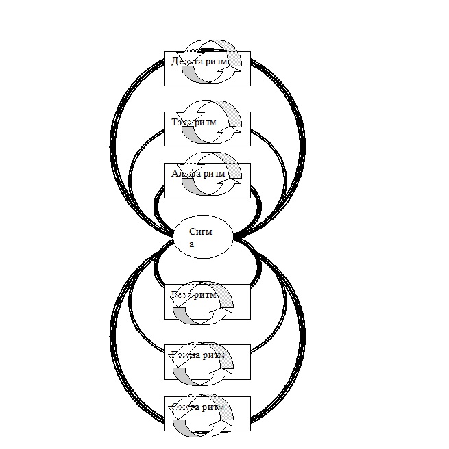 В данном случае энергетическая структура человека представляет собой ряд вложенных друг в друга восьмёрок, каждая из которых исходит из области Сигма ритмов, из ВОЛИ человека. И каждая из них обладает не только БЕССМЕРТИЕМ, но и способностью к постоянному развитию. Так, если нам удалось сформировать «восьмеричное ментальное» тело, то мы можем не только довести его форму до совершенства, но и начать формировать «восьмеричное астральное» тело и так далее. И на этом пути нет силы, которая может противостоять человеку, или контролировать его.