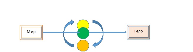 Внизу те же крайние лини позволяют нам воплотиться в материальную половину нашего мира, ощутить его целиком, как продолжение нашего тела. Или воплотиться в свое тело – в каком-то смысле это обратная сторона окружающего нас мира. Эти линии блокируются теми же «бляшками», только здесь они формируются не из образов, а из материальных объектов.