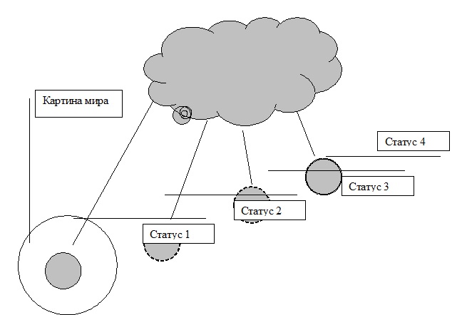 Если учесть, что все эти точки, определяющие наш социальный статус, связаны между собой в рамках громадного и противостоящего нам организма, то нашу картину мира можно изобразить следующим образом.