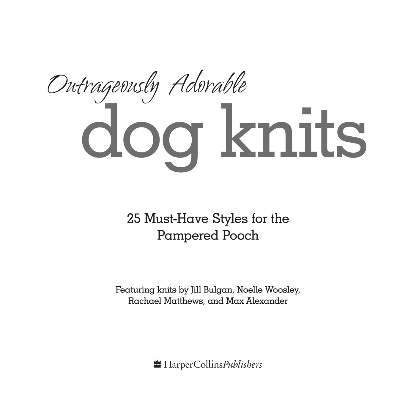 Noelle Woosley asserts her moral rights as creator and author of the following patterns: Elizabethan ruff, Feelin’ Fancy Bowtie, Pompom Scarf for Petite Pooches, Chunky Scarf for the Larger Dog, Simple Roll-Neck Sweater, Holiday Patterned Sweater, Preppy Puppy Letterman Sweater, Rabbit Ear Bonnet, Urban Hoodie, Stylish Stripes Sweater, Elf Hat, Flower Embellishment.