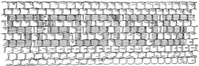 It is necessary in this style of weaving that the filling should be a hand-twisted thread of the same weight and size as the warp, and of a lighter or darker shade of the same colour. If the warp is dark, the filling may be light, or the reverse. It should be warped at the rate of about twenty-four threads to the inch.