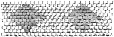 The border can be made brighter, as well as firmer and stiffer, by using two filling threads together—a red and a black; or an alternate use of red and black, using two shuttles, will give a lighter and better effect than when black is used exclusively.