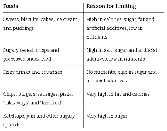 Many governments across the world are now so concerned about the poor quality of children’s diets that they are funding initiatives to try to change the eating habits of a generation. Not only does a bad diet stunt a child’s growth and development, and cause obesity and lethargy; it can also produce behavioural problems. I mentioned this in my book Happy Kids (a guide to raising well-behaved and contented children) and received hundreds of emails from parents who, after reading my book, suddenly connected some foods with their child’s bad behaviour. More of that later, but first let’s look at the foods that should be limited in a child’s diet: