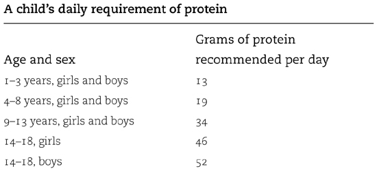 Protein is another essential requirement in a child’s diet. Protein is the building block of life. Every cell in the human body contains protein, and protein is needed for growth and repair.