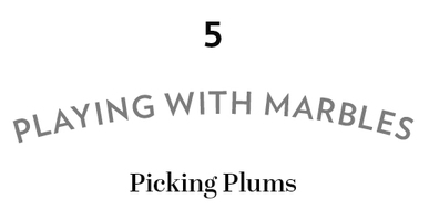 ‘So these are the plums,’ I say to her, pointing at the line of marbles, feeling such excitement that I have her attention, that she’s all mine, that she’s listening to me talking about marbles, that she’s possibly going to play marbles, that nobody else can steal her attention away. All aches and pains from my fever are gone in the distraction and hopefully hers are too. ‘You have to shoot your marble at the plums and if you hit it out of line you get the plum.’
