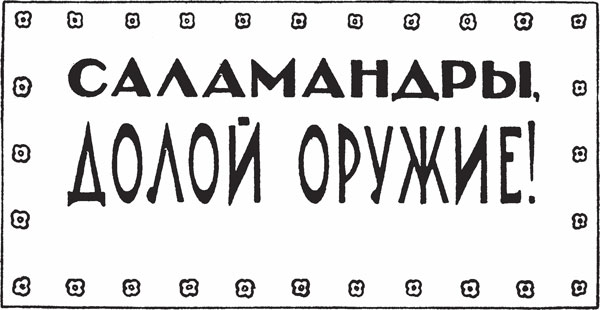 Что касается женевской Комиссии по изучению Саламандрового Вопроса, то она проделала большую и заслуживающую уважения работу, главным результатом которой было то, что она весьма тщательно избегала обсуждения любых жгучих политических и хозяйственных вопросов. Она заседала постоянно в течение многих лет и провела свыше тысячи трехсот заседаний, на которых велись добросовестные дебаты о введении единой международной терминологии для обозначения саламандр. Дело в том, что в этой сфере господствовал безнадежный хаос: помимо научных терминов вроде Salamandra, Molche, Batrachus (которые начали казаться несколько некорректными) предлагалась целая куча других названий: саламандр предлагали называть тритонами, нептунидами, фетидами, нереидами, атлантами, океаниками, посейдонами, лемурами, пелагами, литоралями, понтиками, батидами, абиссами, гидрионами, сумаринами, жандемерами (от Gens de Mer) и т. д. Комиссия по изучению Саламандрового Вопроса должна была выбрать из всех этих названий наиболее подходящее – и занималась решением этой задачи горячо и добросовестно вплоть до самого конца Эпохи Саламандр, но так и не пришла к окончательному и единодушному решению.