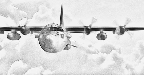 El ala derecha del C-130 se soltó y se dirigió hacia ellos. La mitad de él se había ido, incluyendo el motor fuera de borda. El motor restante estaba en llamas, dejando un rastro espiral de humo grasiento.