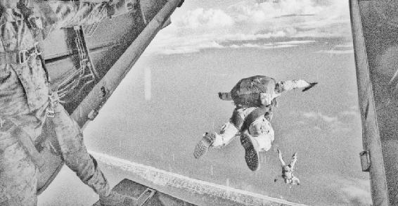 Alexander escudriñó el horizonte. “Es extraño”, dijo mientras se retorcía, tratando de ver a sus soldados y contar los paracaídas, pero no podía ver nada más allá del dosel de su propio paracaídas. “¿Quién está en el aire?”, gritó en su micrófono. “Grita por los números”.