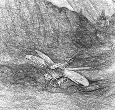 — “Sí”, dijo Kawalski, “una libélula del tamaño de tu mano”.