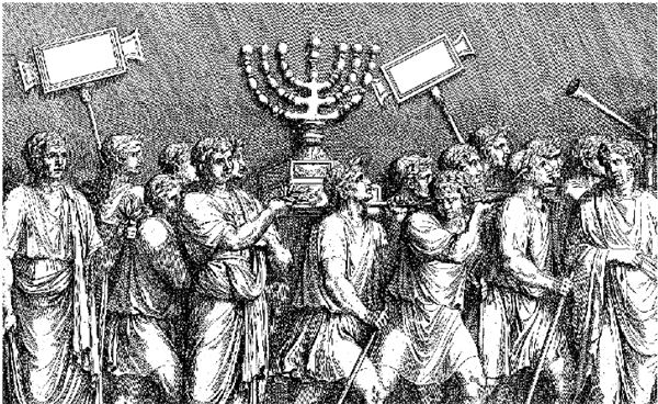 Менора, семиствольный светильник, используемый евреями во время богослужений, – была среди военных трофеев, которые победители торжественно пронесли по Риму после разрушения Иерусалима.