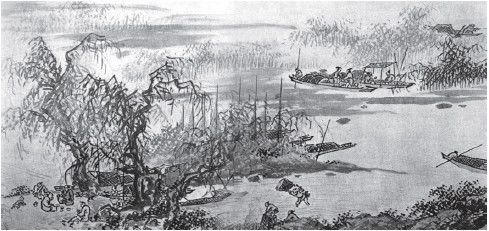 Часть пейзажа «Рыбаки на реке», датируемого XV в., свидетельствует о том, что в дельтах рек Южного и Центрального Китая преобладали заболоченные земли