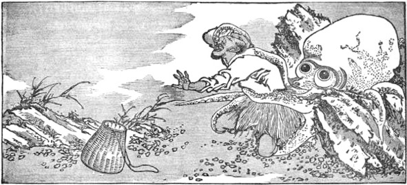 Рис. 1. Рыбак, на которого напал Осьминог. (Факсимиле из рисунка известного японского художника Хокусая, жившего около начала нынешнего столетия.)
