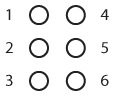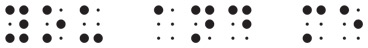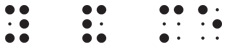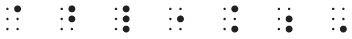 Поскольку книга получилась бы запредельно дорогой, если бы хоть пару страниц набрали шрифтом Брайля, я пользовался нотацией, традиционно применяемой для передачи азбуки Брайля при печати. В такой нотации отображаются все шесть точек в клетке. Жирные точки – это выпуклости на бумаге, мелкие – плоские элементы клетки. Например, в следующем брайлевском символе точки 1, 3 и 5 выпуклые, а 2, 4 и 6 – нет.