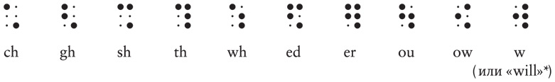 Во-первых, можно использовать коды букв a – j, добавляя к каждому из них выпуклую точку 6. Эти коды применяются в основном для сокращения в слове букв, для буквы w и другого сокращения слов.