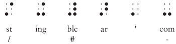 Во-вторых, можно взять коды букв a – j и «опустить» их так, чтобы использовались лишь точки 2, 3, 5 и 6. Этими кодами обозначаются некоторые знаки препинания и сокращения, в зависимости от контекста.