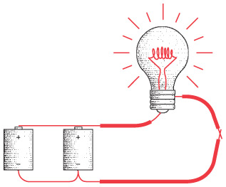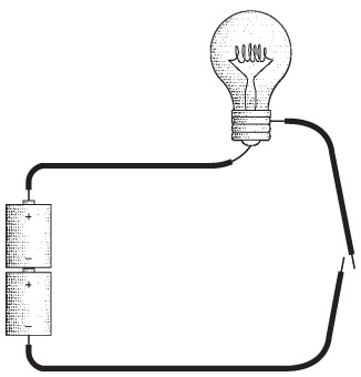 Мы только что сконструировали простую электрическую цепь. Первым делом необходимо отметить, что эта цепь представляет собой круг. Лампочка зажжется лишь в том случае, если контур от батареек к лампочке, далее к переключателю и обратно к лампочке будет непрерывным. Достаточно любого разрыва – и лампочка погаснет. Выключатель нужен для того, чтобы управлять этим процессом.
