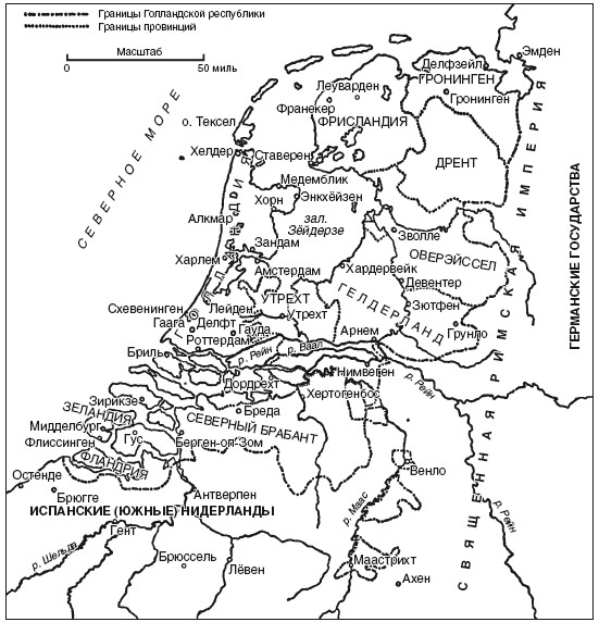 80 лет были не таким уж коротким промежутком времени, если касаться продолжительности жизни в те времена. В большинстве европейских стран она составляла около 30–32 лет, и немногие из молодых жителей Нидерландов в июне 1568 г. смогли дожить до дня, описанного Соузой Коутиньо. Однако образованные нидерландцы или испанцы не стали бы отрицать, что предыдущие 80 лет были временем беспрецедентных перемен и потрясений. В 1568 г. Нидерланды образовали сложную совокупность земель и городов, говорящих на фламандском и/или на французском языках, произвольно объединенных в 17 провинций под скипетром короля из испанских Габсбургов, чьи владения простирались от Фризских островов в Северном море до Филиппин в Южно-Китайском море. Общеизвестно, что лютеранство, анабаптизм, кальвинизм и другие виды протестантской ереси пустили в Нидерландах глубокие корни, о чем свидетельствовали beeldenstorm – иконоборческие бунты 1566 г., когда церкви подвергались разграблению, образа уничтожались, а со священниками обходились совсем по-скотски. Однако основная масса населения все еще придерживалась римско-католической веры, тогда как протестанты были разбросаны незначительными группами по всей стране, значительно меньше представленные – если представленные вообще – в северных провинциях по сравнению с южными. Альба с легкостью разгромил (21 июля 1568 г.) доморощенные войска Вильгельма, принца Оранского, при первой попытке вооруженного сопротивления испанскому правлению и религиозным преследованиям. Похоже, не существовало серьезного шанса на то, чтобы сломленные духом и дезорганизованные повстанцы могли снова выступить против Испании без помощи Англии или Франции, и ничего подобного не предвиделось. Фламандские и валлонские дворяне, на которых можно было положиться в руководстве победоносным мятежом, были либо мертвы или в заключении, либо бежали или совершенно запуганы. В экономическом отношении Антверпен являлся бесспорным торговым и банковским центром Европы севернее Альп и Пиренеев. Амстердам, ведущий город и центр кораблестроения Северных Нидерландов, хоть и все более богатеющий от своей торговли на Балтике, с Западной Францией и Иберийским полуостровом, похоже, не мог конкурировать с Антверпеном – не говоря уж о том, чтобы занять его место в качестве оплота коммерции западного мира.