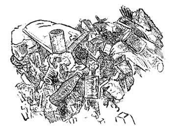 Откуда ни возьмись, появились обглоданные куриные кости, скрюченные тюбики из-под зубной пасты, пакет из-под кефира. Целая армия отбросов окружила девочек и перекрыла им путь.