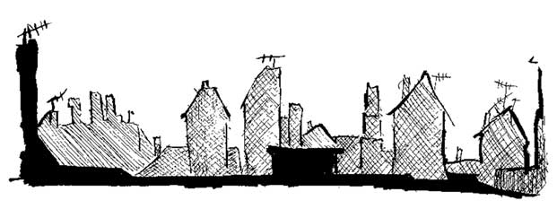 Вдали вздымался лес высотных многоэтажек, виднелась какая-то странная то ли раковина, то ли овощ, дальше – гибрид печатной машинки и холодильника, в общем, далекая панорама Нонлондона, открывающаяся с крыши одного из домов, но прямо перед их взором расстилалось море черепичных крыш, и ничего хорошего это море им не предвещало.