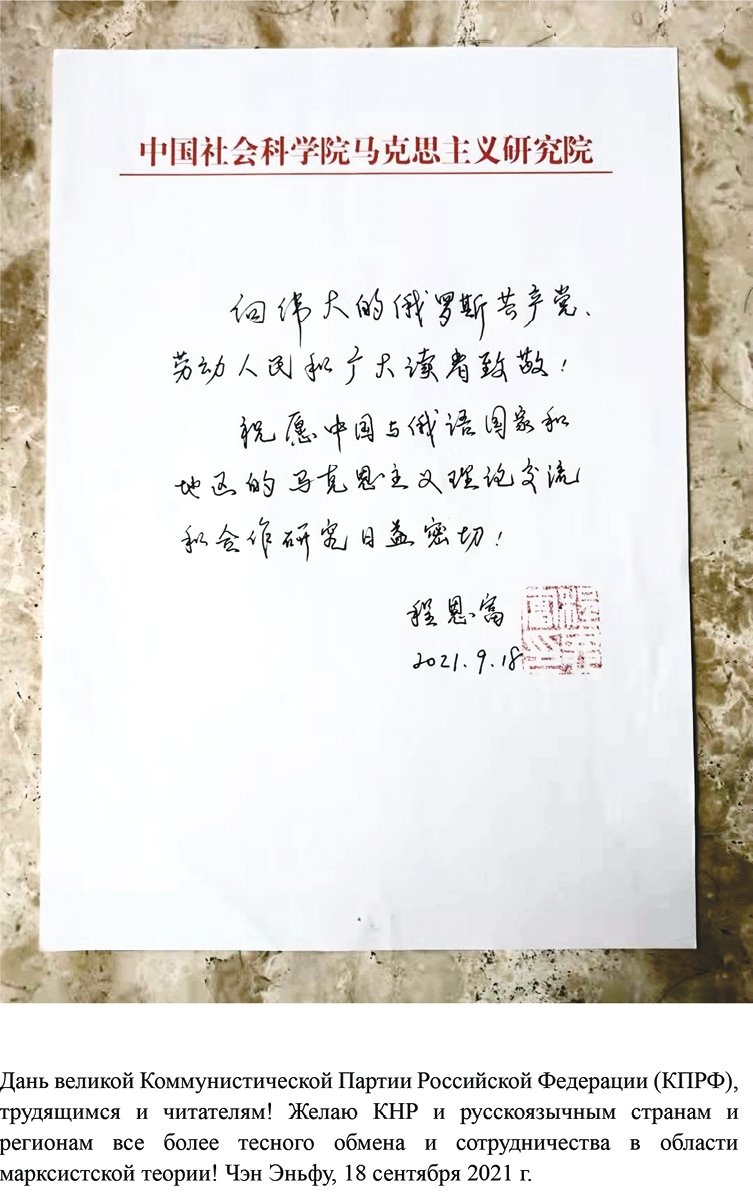«Призрак» научного коммунизма Маркса был руководящей идеологией и высшей программой пролетариата для революции и строительства с момента его рождения более ста лет назад. От Парижской коммуны до Октябрьской революции, от Октябрьской революции до основания Китайской Народной Республики и создания евразийских социалистических стран, от полуфеодальной и полуколониальной страны с накопленной бедностью до успешной практики пути к социализму с китайской спецификой, – траектория истории показала, что коммунизм больше не «призрак», а высоко развевающийся флаг.