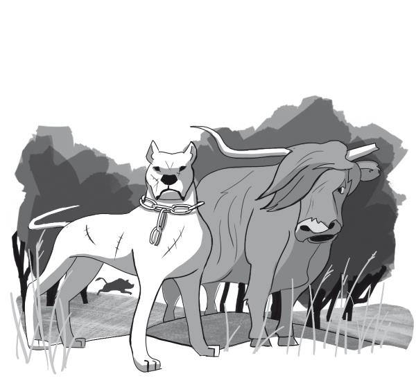 Перед ними стоял крупный аргентинский дог: длинные лапы, крупная морда, испещрённая шрамами и рубцами. По холодному, безразличному взгляду было видно, что пёс повидал немало битв. Бык же выглядел утомлённым. Рога его были несимметричны: один из них сломанный, другой – острый, как бритва.
