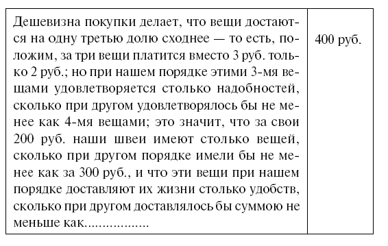 – Сравните жизнь семейства, расходующего 1000 руб. в год, с жизнью такого же семейства, расходующего 4000 руб., не правда ли, вы найдете громадную разницу? – продолжал Кирсанов. – При нашем порядке точно такая же пропорция, если не больше: при нем получается вдвое больше дохода, и доход употребляется вдвое выгоднее. Удивительно ли, что вы нашли жизнь наших швей вовсе не похожею на ту, какую ведут швеи при обыкновенном порядке?