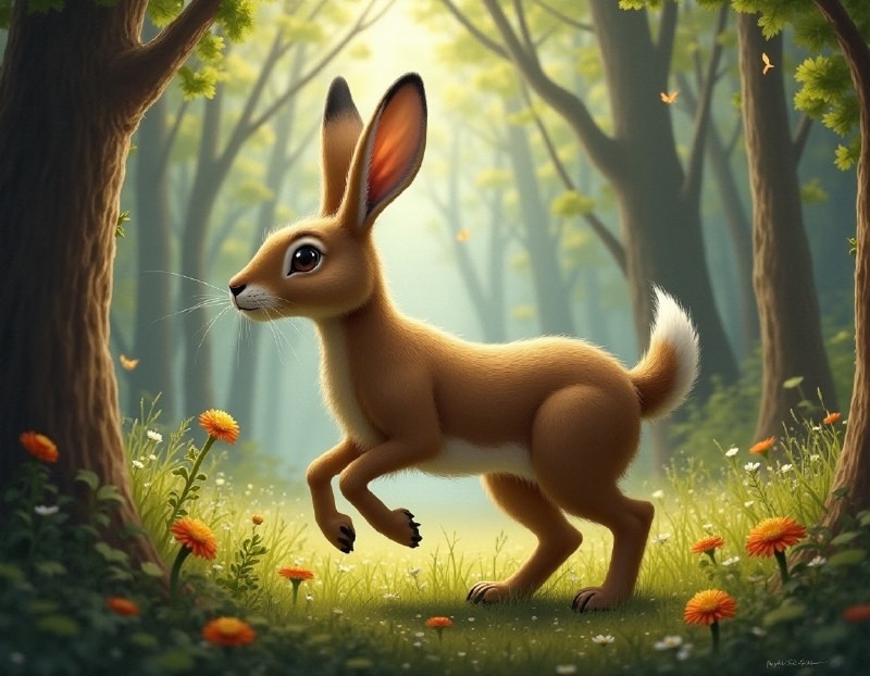 В одном зелёном лесу, среди высоких деревьев и ярких цветов, жил-был смелый заяц по имени Тимка. Он был не только быстрым, но и очень любознательным. Каждый день Тимка отправлялся на поиски приключений, мечтая о том, чтобы стать настоящим героем.