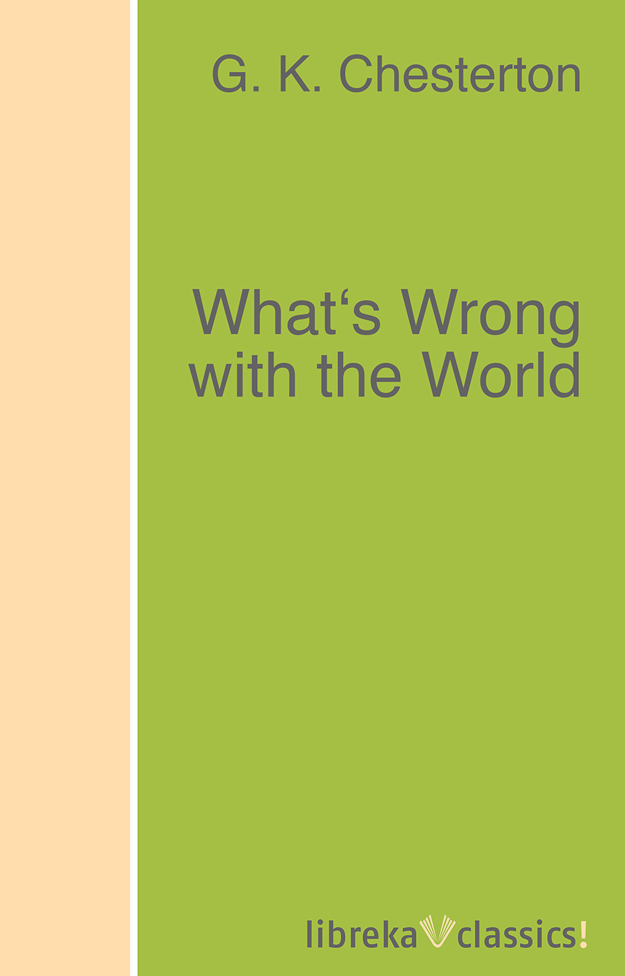 PART ONE. THE HOMELESSNESS OF MAN I. THE MEDICAL MISTAKE II. WANTED, AN UNPRACTICAL MAN III. THE NEW HYPOCRITE IV. THE FEAR OF THE PAST V. THE UNFINISHED TEMPLE VI. THE ENEMIES OF PROPERTY VII. THE FREE FAMILY VIII. THE WILDNESS OF DOMESTICITY IX. HISTORY OF HUDGE AND GUDGE X. OPPRESSION BY OPTIMISM XI. THE HOMELESSNESS OF JONES PART TWO. IMPERIALISM, OR THE MISTAKE ABOUT MAN I. THE CHARM OF JINGOISM II. WISDOM AND THE WEATHER III. THE COMMON VISION IV. THE INSANE NECESSITY PART THREE. FEMINISM, OR THE MISTAKE ABOUT WOMAN I. THE UNMILITARY SUFFRAGETTE II. THE UNIVERSAL STICK III. THE EMANCIPATION OF DOMESTICITY IV. THE ROMANCE OF THRIFT V. THE COLDNESS OF CHLOE VI. THE PEDANT AND THE SAVAGE VII. THE MODERN SURRENDER OF WOMAN VIII. THE BRAND OF THE FLEUR-DE-LIS IX. SINCERITY AND THE GALLOWS X. THE HIGHER ANARCHY XI. THE QUEEN AND THE SUFFRAGETTES XII. THE MODERN SLAVE PART FOUR. EDUCATION: OR THE MISTAKE ABOUT THE CHILD I. THE CALVINISM OF TO-DAY II. THE TRIBAL TERROR III. THE TRICKS OF ENVIRONMENT IV. THE TRUTH ABOUT EDUCATION V. AN EVIL CRY VI. AUTHORITY THE UNAVOIDABLE VII. THE HUMILITY OF MRS. GRUNDY VIII. THE BROKEN RAINBOW IX. THE NEED FOR NARROWNESS X. THE CASE FOR THE PUBLIC SCHOOLS XI. THE SCHOOL FOR HYPOCRITES XII. THE STALENESS OF THE NEW SCHOOLS XIII. THE OUTLAWED PARENT XIV. FOLLY AND FEMALE EDUCATION PART FIVE. THE HOME OF MAN I. THE EMPIRE OF THE INSECT II. THE FALLACY OF THE UMBRELLA STAND III. THE DREADFUL DUTY OF GUDGE IV. A LAST INSTANCE V. CONCLUSION THREE NOTES I. ON FEMALE SUFFRAGE II. ON CLEANLINESS IN EDUCATION III. ON PEASANT PROPRIETORSHIPDEDICATION To C. F G. Masterman, M. P. My Dear Charles, I originally called this book "What is Wrong," and it would have satisfied your sardonic temper to note the number of social misunderstandings that arose from the use of the title. Many a mild lady visitor opened her eyes when I remarked casually, "I have been doing 'What is Wrong' all this morning." And one minister of religion moved quite sharply in his chair when I told him (as he understood it) that I had to run upstairs and do what was wrong, but should be down again in a minute. Exactly of what occult vice they silently accused me I cannot conjecture, but I know of what I accuse myself; and that is, of having written a very shapeless and inadequate book, and one quite unworthy to be dedicated to you. As far as literature goes, this book is what is wrong and no mistake. It may seem a refinement of insolence to present so wild a composition to one who has recorded two or three of the really impressive visions of the moving millions of England. You are the only man alive who can make the map of England crawl with life; a most creepy and enviable accomplishment. Why then should I trouble you with a book which, even if it achieves its object (which is monstrously unlikely) can only be a thundering gallop of theory? Well, I do it partly because I think you politicians are none the worse for a few inconvenient ideals; but more because you will recognise the many arguments we have had, those arguments which the most wonderful ladies in the world can never endure for very long. And, perhaps, you will agree with me that the thread of comradeship and conversation must be protected because it is so frivolous. It must be held sacred, it must not be snapped, because it is not worth tying together again. It is exactly because argument is idle that men (I mean males) must take it seriously; for when (we feel), until the crack of doom, shall we have so delightful a difference again? But most of all I offer it to you because there exists not only comradeship, but a very different thing, called friendship; an agreement under all the arguments and a thread which, please God, will never break. Yours always, G. K. Chesterton.