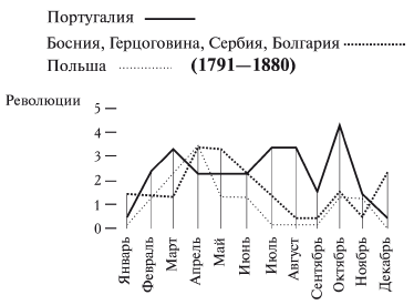 Революции в Англии, Шотландии, Ирландии, Швеции, Норвегии, Дании и в Европейской России по месяцам (1791–1880)