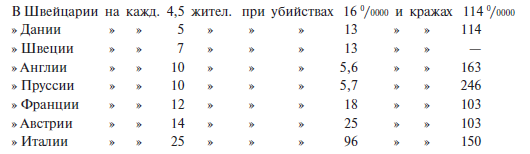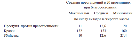 Цифры эти свидетельствуют о том, что число убийств обратно пропорционально количеству вкладов, между тем как кражи, напротив, прямо пропорциональны числу их.