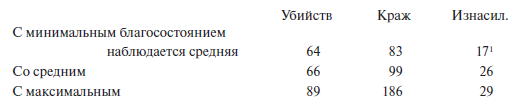 Что касается преступлений против нравственности, то относительно их получаются довольно неожиданные выводы: именно минимум этих преступлений наблюдается у нас при среднем благосостоянии населения, а максимум – при минимуме его. Это очевидно противоречит обычному ходу преступлений против нравственности, которые всегда возрастают по мере увеличения народного благосостояния.