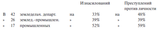 7. Земледельческие и промышленные области. В местностях, где очень развита промышленная деятельность, окончательно вытеснившая сельское хозяйство, наблюдается обыкновенно и значительная преступность.