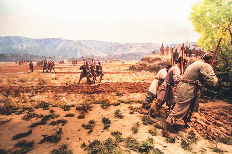 Оросительная система начиналась с совсем небольшой канавки, называвшейся «цюань» (畎), и подходила напрямую к участку возделываемого поля. Следующие элементы канавы назывались «суй» (遂), «гоу» (沟), «сю» (洫) и «куай» (浍). Постепенно углубляясь и пересекаясь, они в конце концов впадали в реку. Во времена династий Ся, Шан и Чжоу, в XXI–III вв. до н. э., река Хуанхэ часто выходила из берегов. Чтобы развивать земледелие на равнинах бассейна реки Хуанхэ, необходимо было создавать водоотводные каналы. С постепенным освоением земель предки современных китайцев с помощью межей делили земельные участки, и по принципу девятипольного межевания земли43 создавали поля квадратной формы. Между этими 9 полями обычно и располагались оросительные каналы. Люди пришли к рытью оросительных канав после того, как легендарный китайский правитель Великий Юй поборол наводнения и научил народ выращиванию культурных растений, а во времена династии Чжоу, в XI–III вв. до н. э., девятипольное межевание и создание оросительных каналов уже прочно укоренилось в сельском хозяйстве. Таким образом, была сформирована основная система сельского хозяйства рабовладельческого общества территорий среднего и нижнего течения реки Хуанхэ.