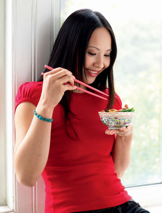 The best part of making room in your life for cooking Chinese is that it is quick and inexpensive to prepare a delicious healthy meal. The trick to cooking Chinese at home is to make sure you invest in a good range of Chinese condiments for your store cupboard—essentials such as groundnut oil, light soy sauce, dark soy sauce, dried chilli flakes, Shaohsing rice wine (or dry sherry), toasted sesame oil, rice vinegar, chilli bean sauce, five-spice powder, Sichuan peppercorns and chilli sauce. Once you’ve bought these essentials it’s just a question of buying fresh meat or fish and vegetables and the all-important Chinese flavourings of garlic, ginger and fresh chillies to create some wonderful flavour combinations such as hot-sour, sweet-sour, spicy-sour, savoury-sweet, smoky-sweet and so on. This means that every shopping trip is relatively inexpensive as the condiments last for ages. If you don’t have access to a Chinese supermarket, do try to find the authentic ingredients—there are lots of stores online, which help make ordering easier—it is worth the effort because you will taste the difference in your dishes.
